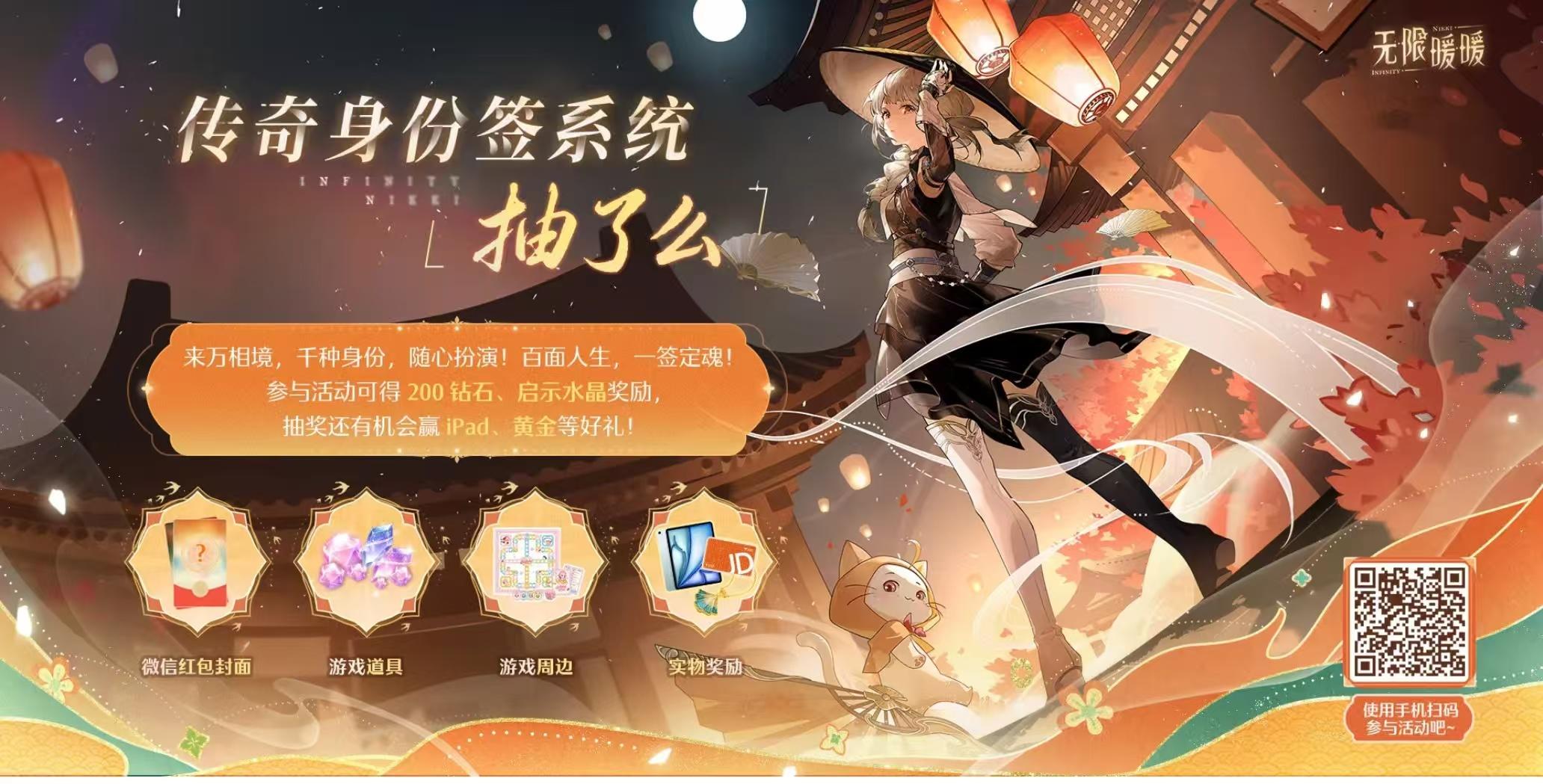 无限暖暖传奇身份签系统「抽了么」开启!点击【https://infinitynikki.nuanpaper.com/proj/wanxiang.html?source=Guide_Qrcode&jp9a=KCwdlDLmU】助力好友邀请;前往页面完成更多任务,可赢取钻石、启示水晶等多重游戏道具!还有机会赢iPad/黄金/微信红包封面/精美周边等好礼!