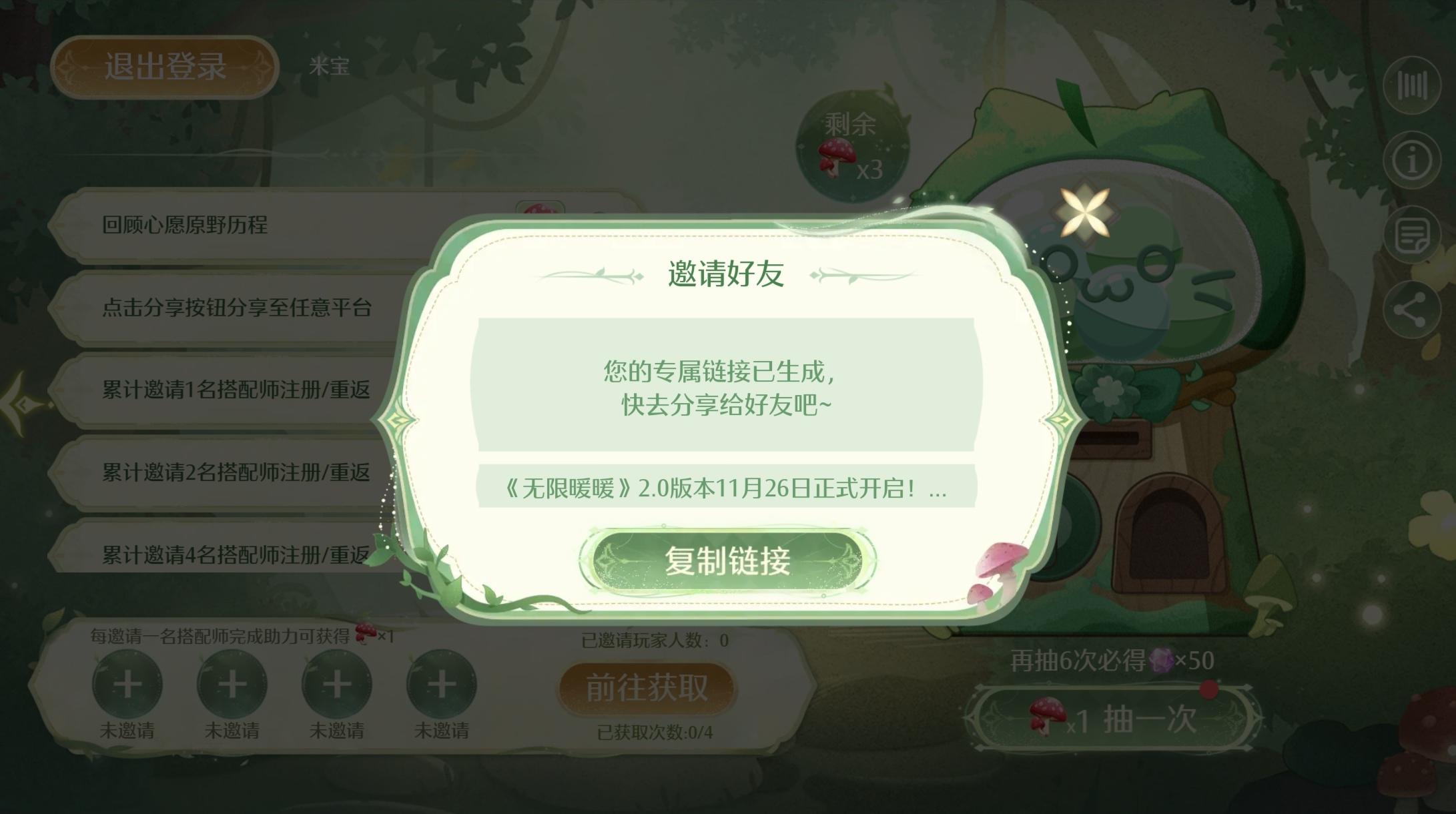 《无限暖暖》2.0版本11月26日正式开启!点击【https://infinitynikki.nuanpaper.com/proj/NikkiJourney.html?jp9a=d1BnPysjYu】进入活动可领取超值奖励,分享并邀请好友还有更多奖励!参与活动抽奖有机会赢Ipad/PS5/拍立得/精美周边等好礼