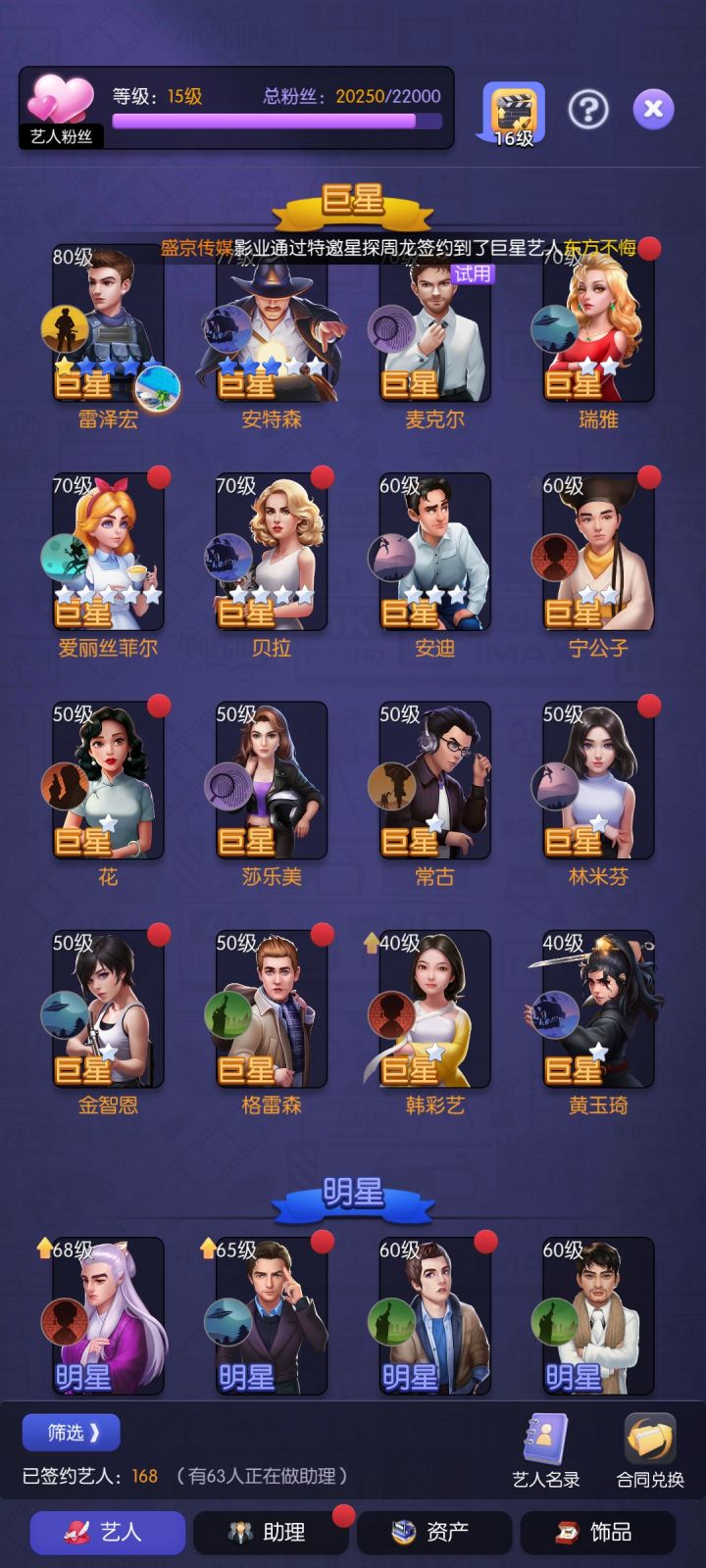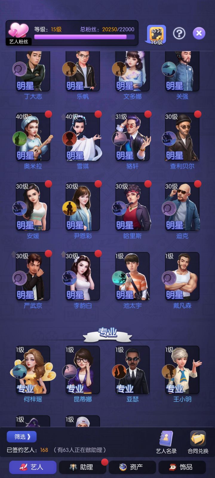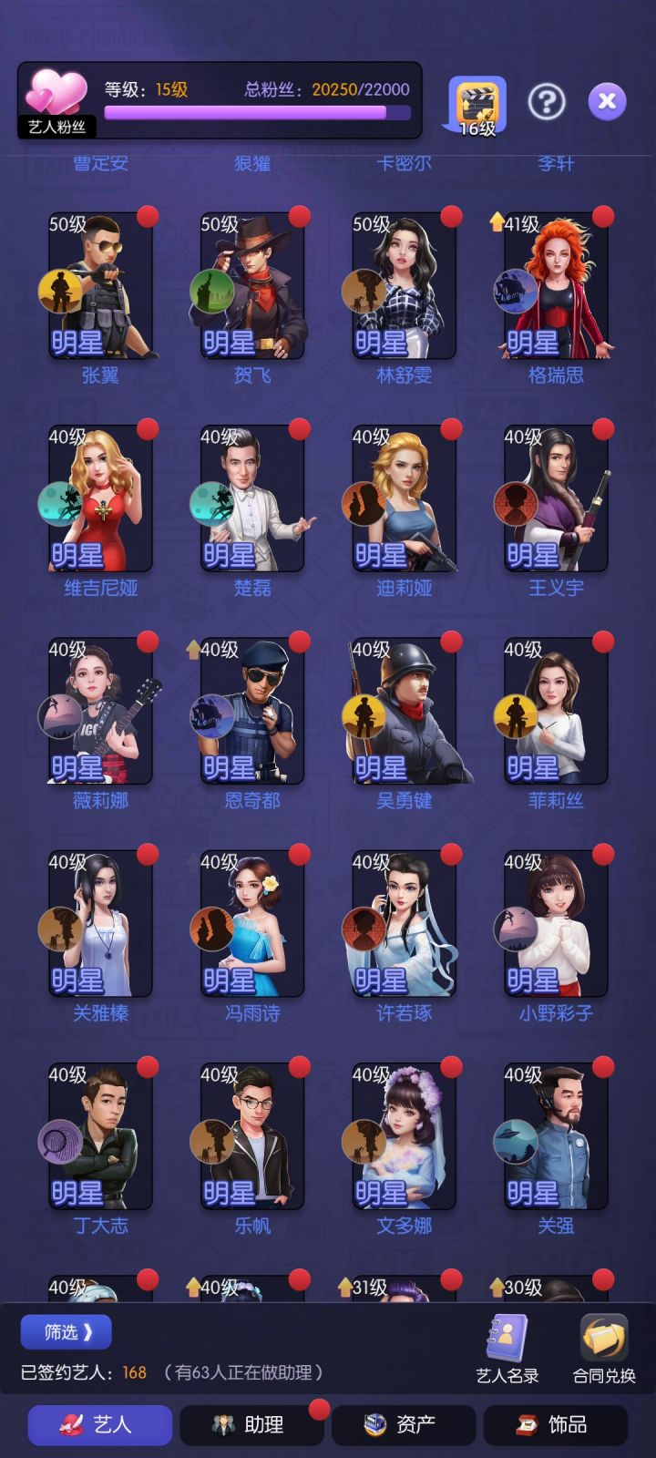 刚进来的萌新们可以先整个秘书先玩玩,有秘书的话就能拍很多影片,获取更多美元、金币,金币可以用来把艺人等级提提玩了一阵时间后,看个人喜好,在决定要不要氪金!!!养老并且想长久玩的就氪双月卡、基金、招财猫藏品,其他就不用氪了,点到为止。1.【艺人培养】参考前面几期的阵容搭配推荐https://www.taptap.cn/moment/413442221392530408这个是0氪可以玩到一