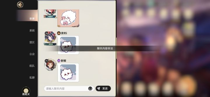 Bug反馈所在区服:(华为渠道服X005长安城)UID号:(50784247228162048)设备型号:Mate40pro系统版本:鸿蒙4.2问题描述:世界不能发言(全是聊天内容非法)