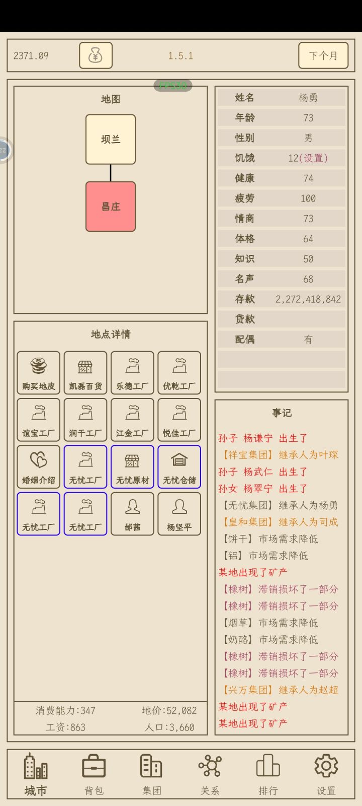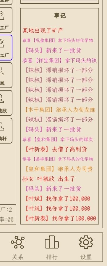 我有几个建议: 1:可以增加工厂改名 2:在集团里面增加工厂一键建造机器想一键招工人一样 3:把某地出现矿产改成准确的地方和一代那样进行招标,如担心有的玩家钱不够可以改成两个模式一个共同开采,一个招标。 4:增加金额单位 希望作者看到谢谢 目前就这样,游戏整体很好的,我完了很多这类型的游戏,只有天狼工作室的游戏我玩的最久。
