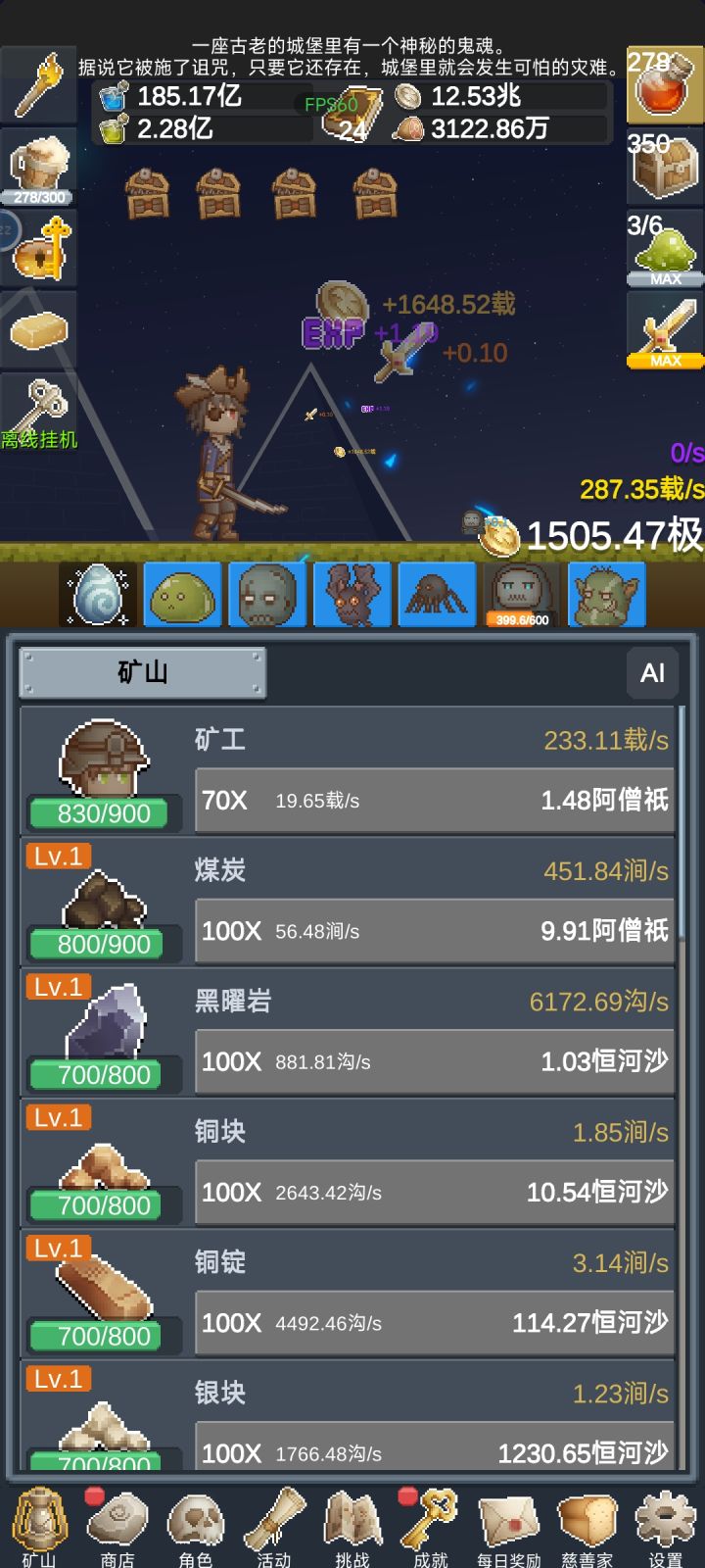 好像在看广告时,这个时间不算在离线或者在线的时间里的。不然很难解释我昨晚看广告睡着了,忘记点关闭了,一直停在广告页面,结果今天早上起来看到的时候,无论是钱钱还是资源都很少这个情况😂😂这个很少的情况,指的是我在线几分钟就能得到的资源量。