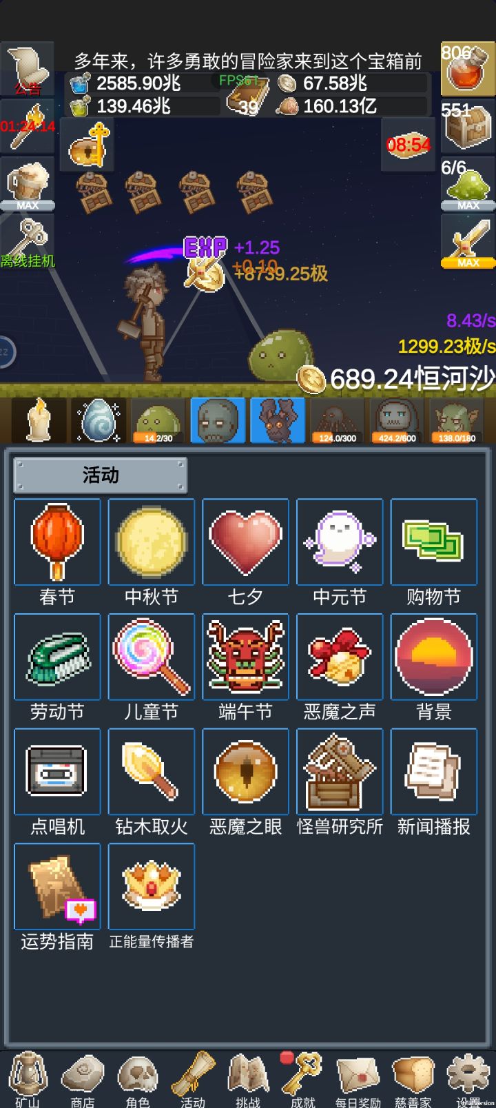 游戏不错,节日活动优先开满,怪物我觉得不是很优先。