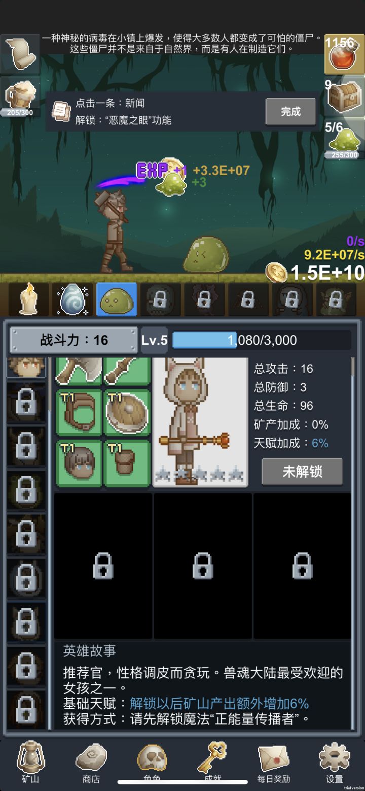 这游戏和steam的无尽的曲奇很像,也有自己独特的玩法,数据方面做得也比较完善,是一款精良的放置挂机游戏玩了一小段时间,个人也总结了一小点看法1转:解锁魔法书2转:开活力药水僵尸怪和下班快乐3转:开活力药水下一层的四个,共计1004转:开500的提神醒脑,10倍速率研究起来很快,到这个时候应该也不止500了,有多的可以点点别的想点的5转:建议速1111点开节日活动,给的加成很高,多余的