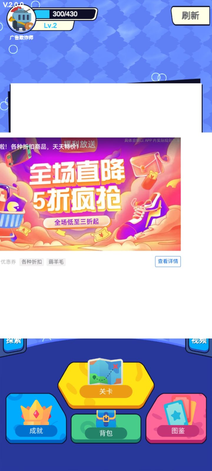 你这探索里的广告介绍至少得有个文字说明吧,为什么都是看一下就闪退,你这个干脆叫闪退模拟器好了