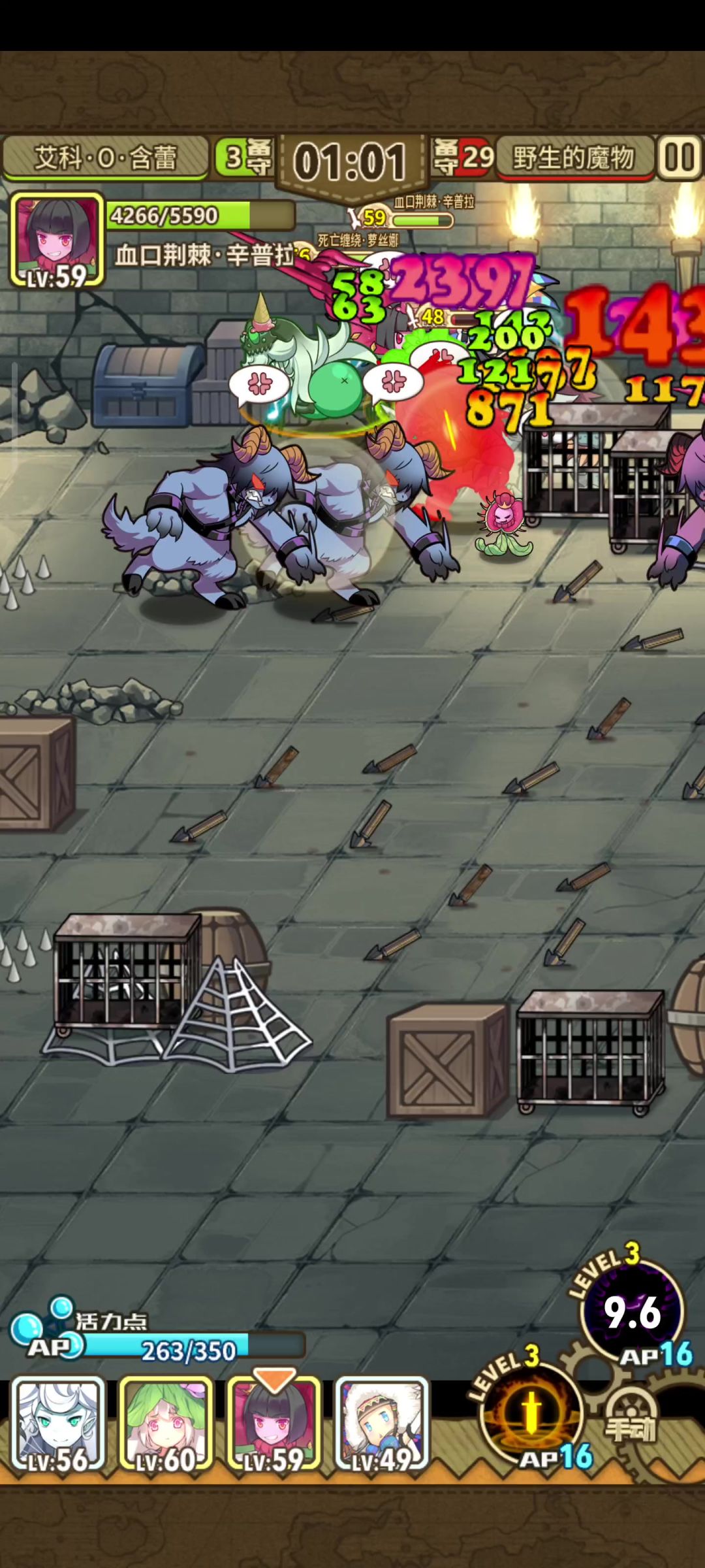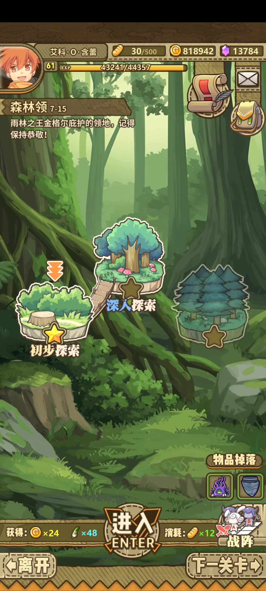 开局先把魔物拉一起,集中火力,依靠酋长的减伤跟蜘蛛的大招控制减少敌人输出,减员没办法,秋风上来的时候其实大招放早了,但是问题不大,后续的狐狸也能分担一部分火力,可惜等级太低。 最开始抱团的敌人解决之后就好办很多了,后续的敌人零零碎碎出现,依靠藕子蜘蛛食人花都能解决,这样就 轻 松 通关了(背地里打了很多次) 过了这个坎,总算是能继续我的旅程了
