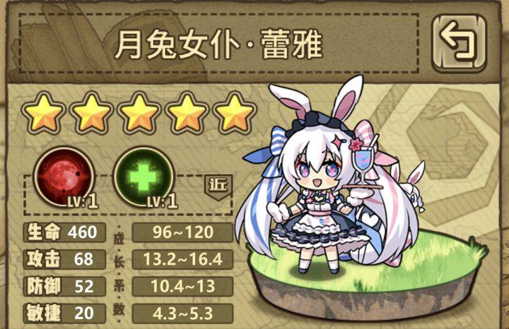 月兔女仆池总体评价还不错,可以捞一捞看看,但是不建议深捞。月兔强度T0.5-T1,定位辅助。雅珂暂定T2,沃沃子杂耍魔物,强度在T1.5-T2左右月兔女仆定位是控制辅助,自身坦度非常高,天赋也是加的坦度,输出能力中等,作为主输出还是略有欠缺。突破建议0破即可,氪佬高破随意。技能方面,5秒赤月,恢复自身5%/7%/9%/12%的最大生命值,使敌方混乱,且友方获得20%/30%/40%/50%的攻