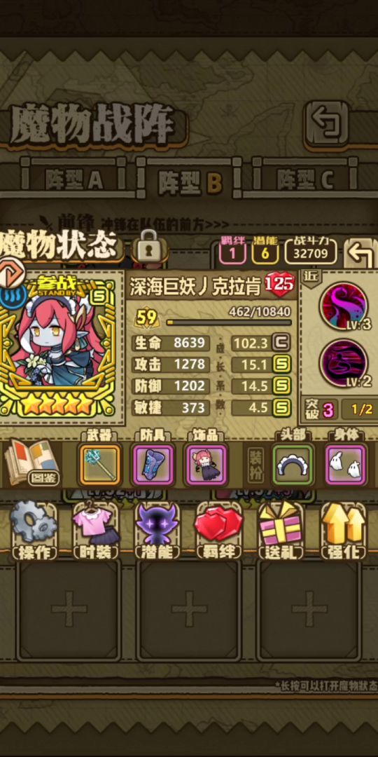 简称 :滑溜蛇,滑溜溜。 最近一直在研究滑溜蛇养成方法,经过一段时间的深入研究,来给大家详细讲解一下这个神级魔物——新萌滴神,前期优先级远高于太太的全能型魔物。新萌推荐T0,大佬推荐T0.5。我的蛇培养到了接近70级,还开了个新号打到了4-17。下面开始讲解: 滑溜蛇一技能:轰炸5次,造成80/100/120%伤害,每次召唤一只25/30/35%属性的蛇,攻击使敌人中毒,造成15/20/25