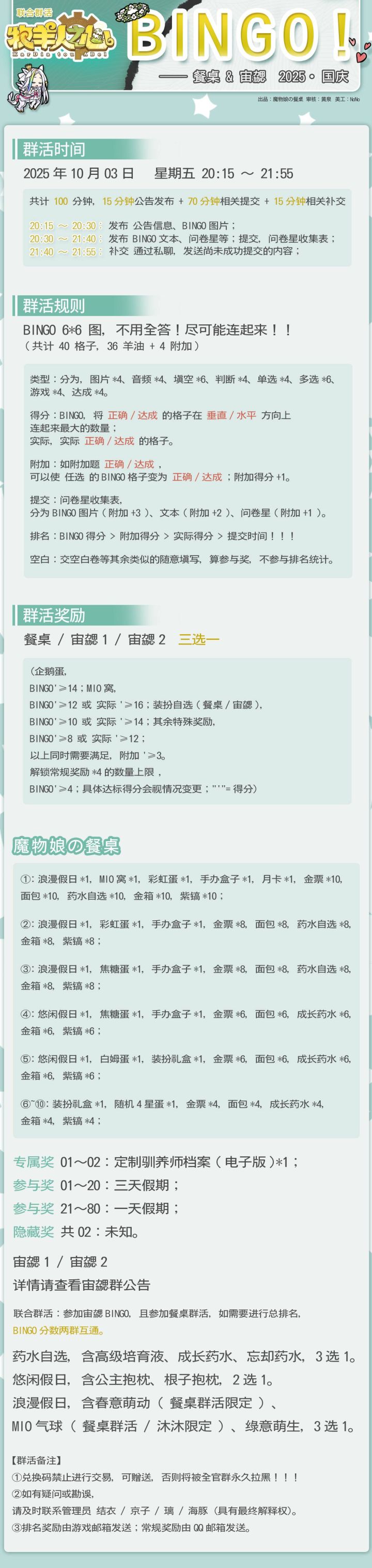 羊油BINGO!2025·国庆 2025.10 —— 餐桌 & 宙勰“哼喵~等小家伙明天醒来,一定要好好rua尾巴喵,嗯!一定喵(≖ᴗ≖ )✧~~”#牧羊人之心