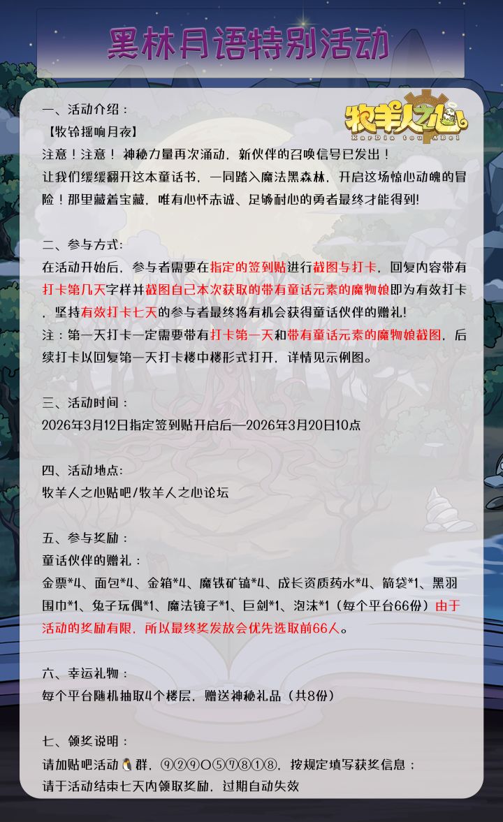 签到/打卡:不在指定时间内打卡是无效的~ #牧羊人之心 #月圆之夜