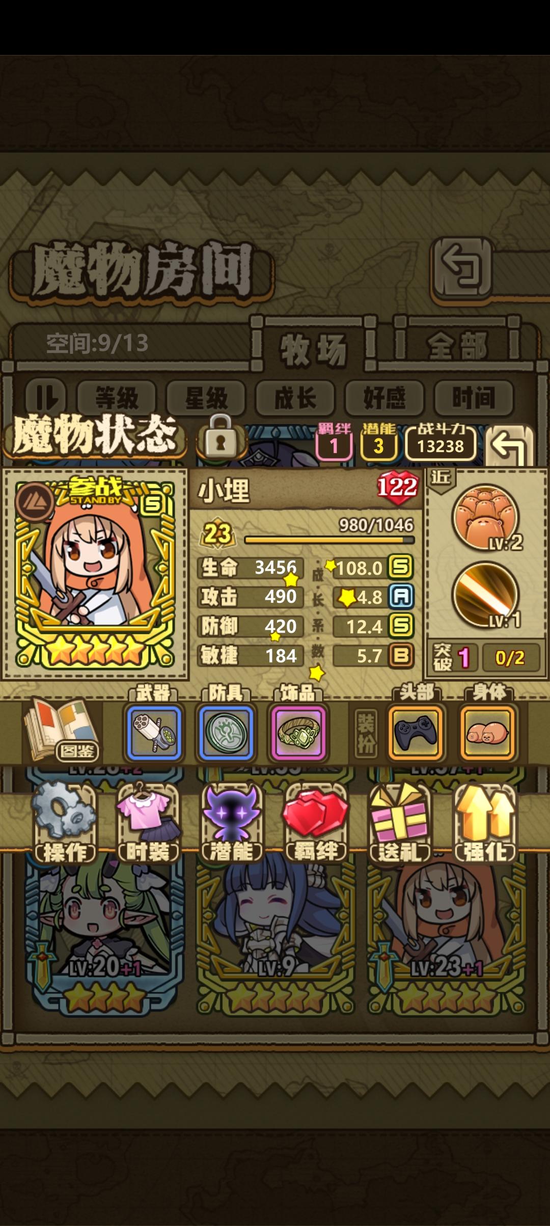 老萌新回归,请问小埋养起来之后怎么配队呀……目前是前排百合铃和天马,后排奇美拉和蜘蛛,不清楚小埋能顶替谁……