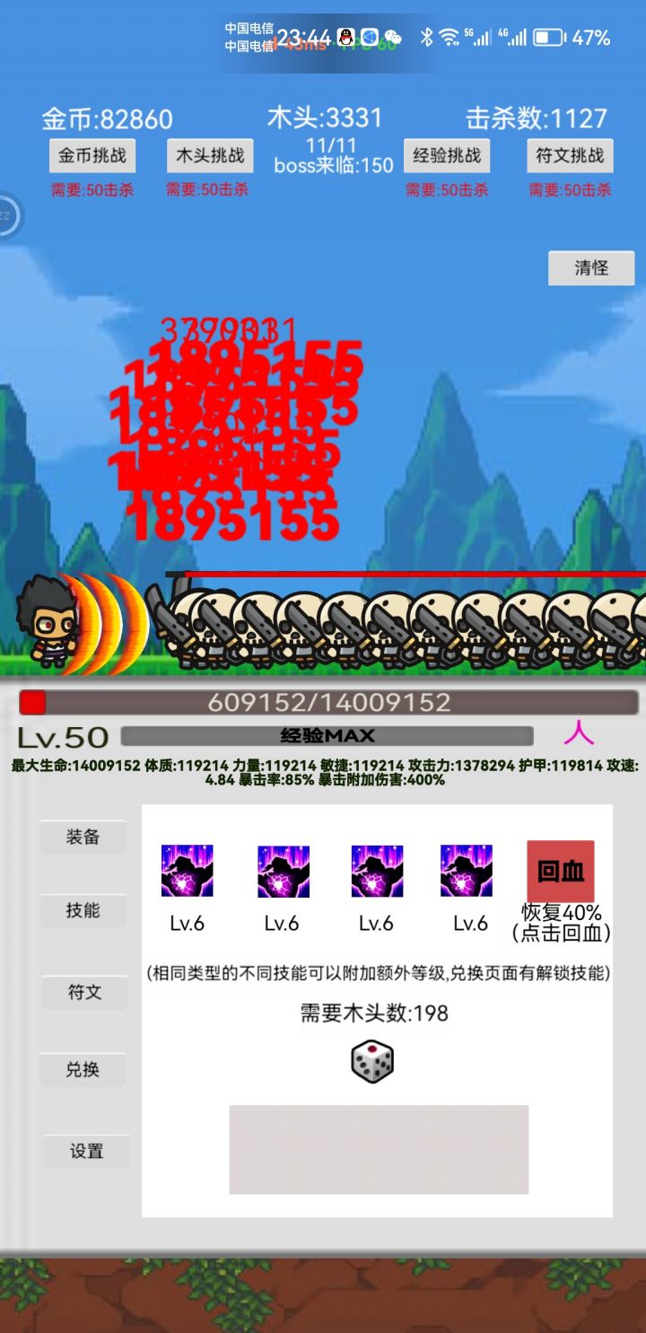 这个就是这个游戏太爽了,三个火系技能加一个复活突突突突突突突能一直传到146关,无尽模式爽到爆#发现好游戏 符文的话,选六个魔,