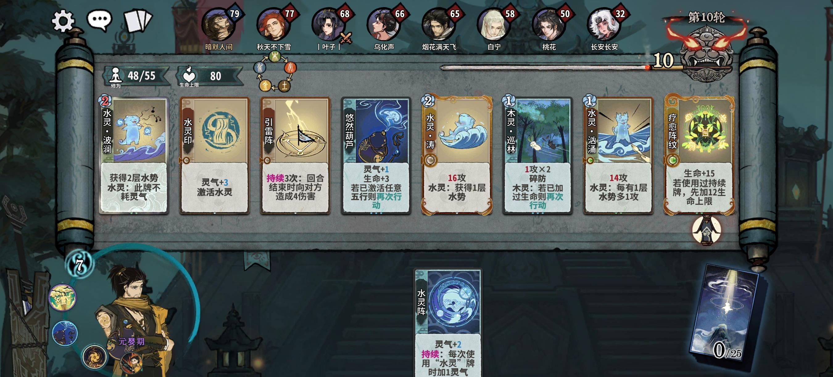吾行之仙命描述错误,是使用后激活而非使用前激活,实战中我放第一排未激活水灵从而不动攒灵气了。