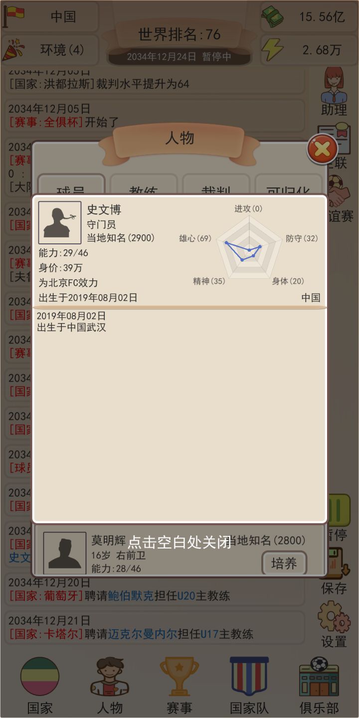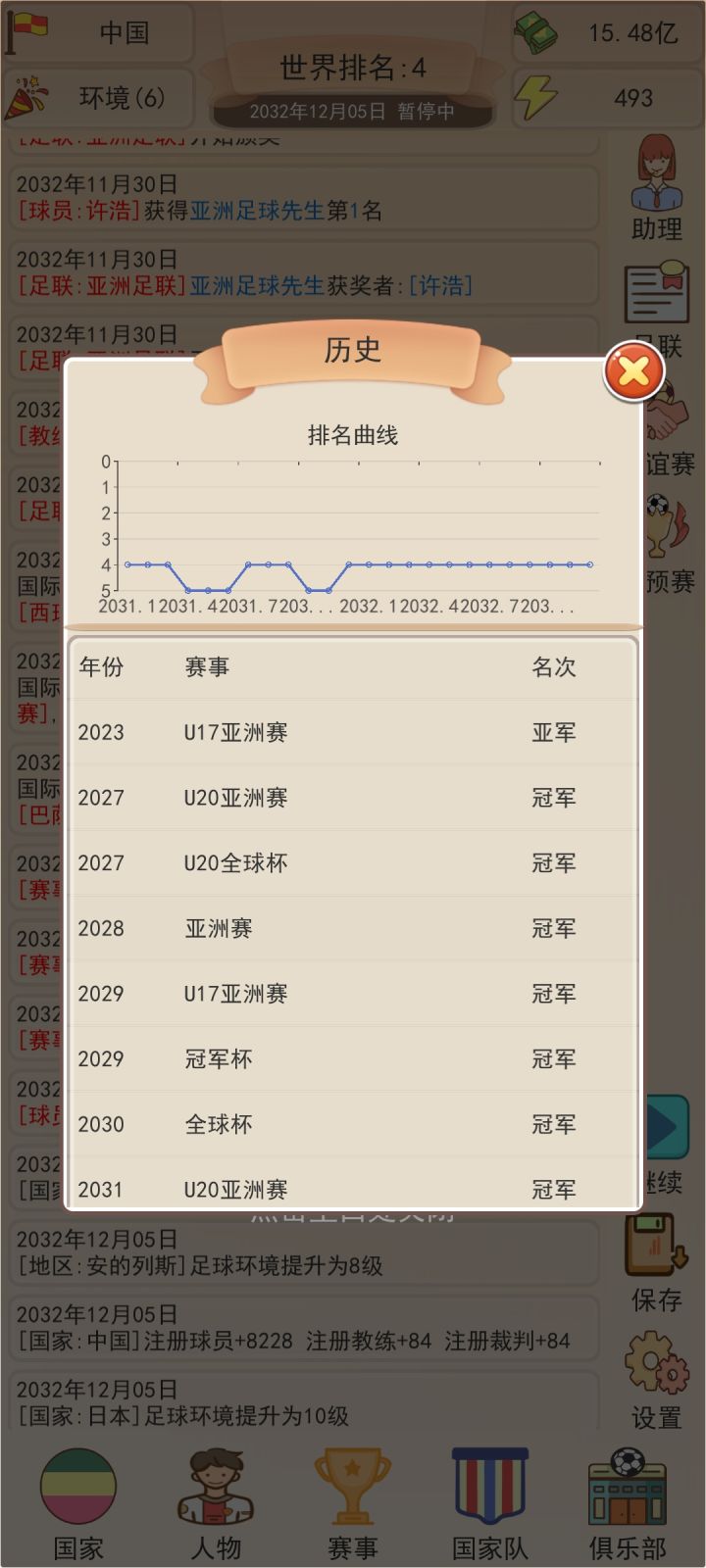 能不能看比赛加上时间,不然都不知道踢多久,虽然很快。最好文字多加点,不要只有抢断进攻射门。另外,俱乐部和国家的荣誉室加一个,可以看到总共拿了多少类型和次数冠军。筛选最好能出下。