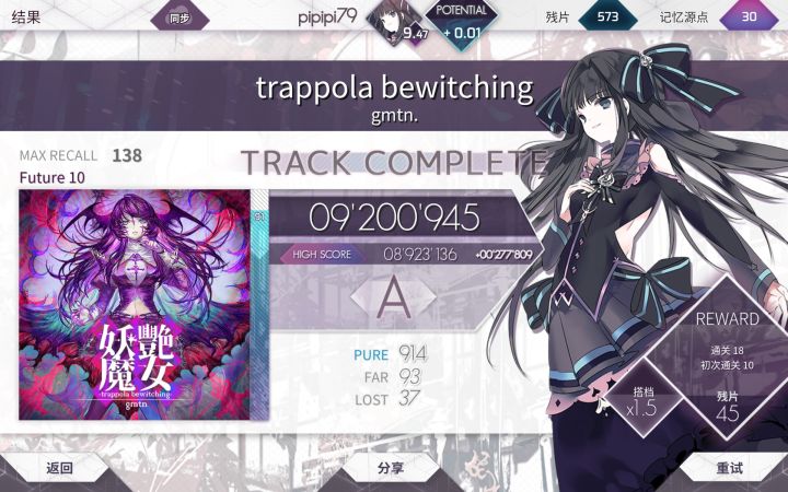 ptt更改上个版本的b30和r10现已经更改成b30和rb10打的最好的三十首(best 30)歌和最近打的最好的十首歌(recent best10)也就是说上个版本的r10现在已经不存在了,现版本的rb10是和b30完全共进退的,完全避免虚高低的问题(两个帖白写了)新版定数图:更新曲包Black Fate主线更新包,共有五首歌以及两首隐藏曲目,解锁隐藏曲之一的Tempestiss