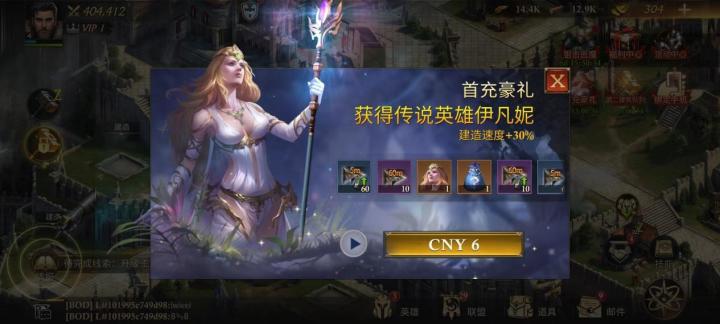 决定在《阿瓦隆之王》里投入资金去运营的领主们,是否考虑过怎么样才能实现最大化收益呢?Hello~大家好,我是带甲八万,仅在军前饶舌的巩朗,想要在前期领先于其他玩家?不妨看看我为大家带来的礼包推荐。英雄成长类礼包No1.首充礼包之所以将首充礼包放在第一位,是因为作为游戏里第一个礼包内容,不仅获取程度简单收益巨大,且传说英雄伊凡妮作为“开荒期强力发动机”,还附带加速卡与建造速度+30%,有和没