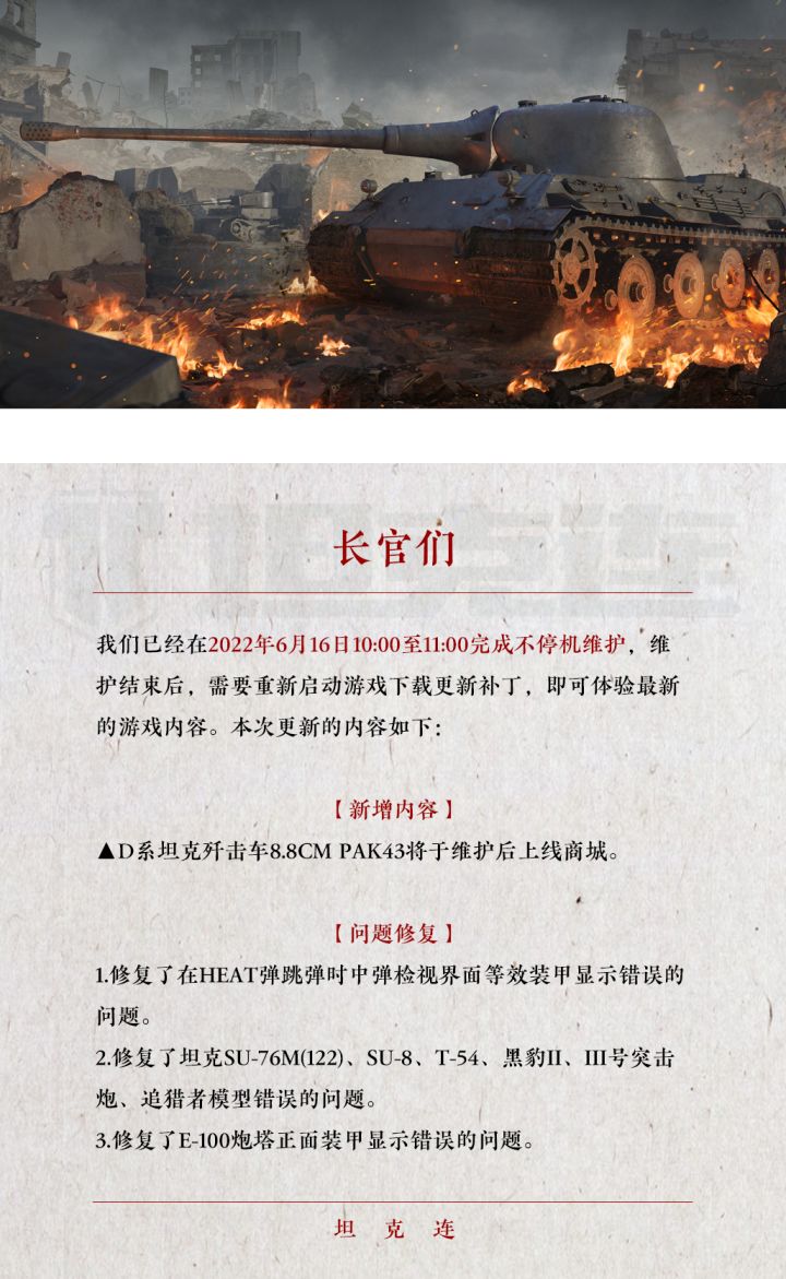 #坦克连#更新公告 | 新增D系VI级金币坦歼、修复检视界面、装甲显示和模型等错误