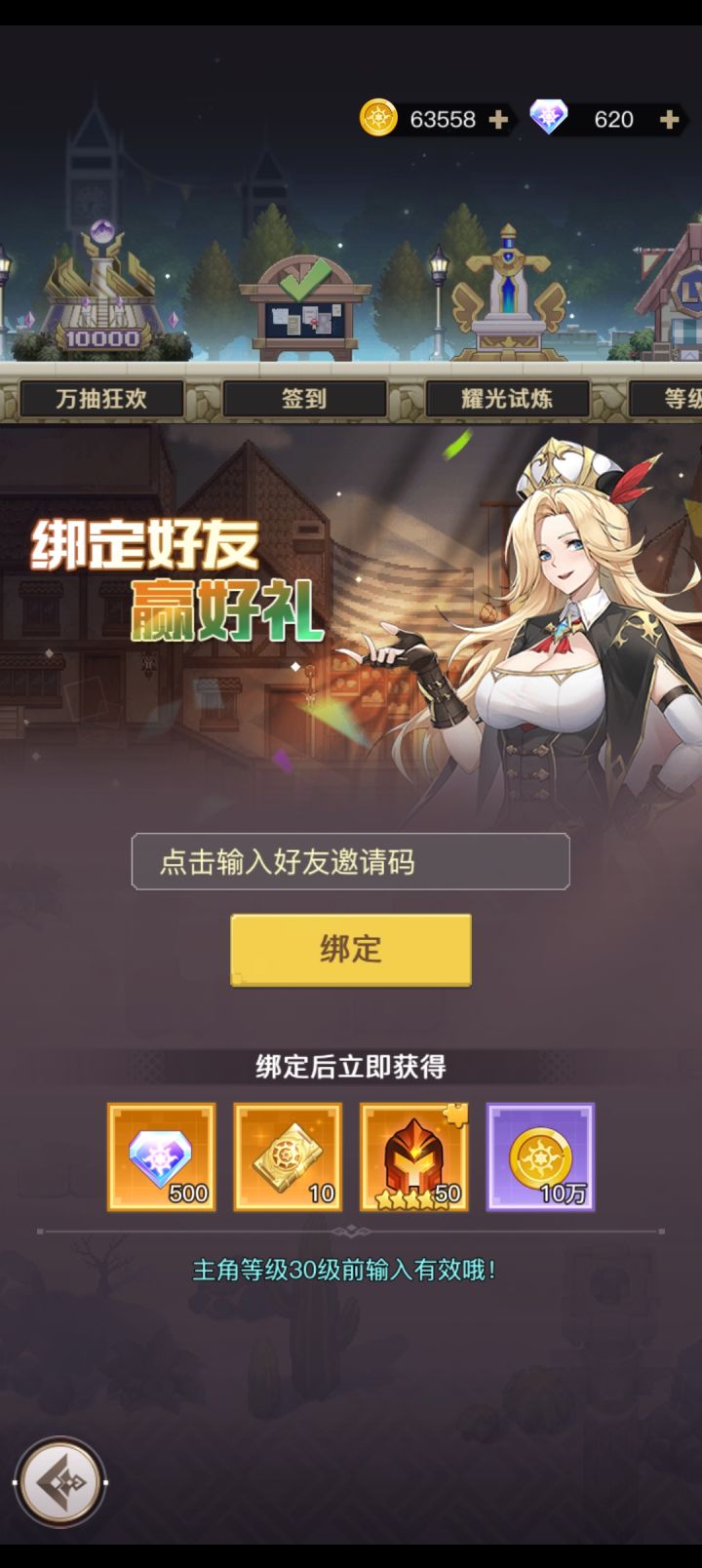 邀请码:48c273d0f732新手攻略1.钻石分配:前4天金币和经验拉满 进阶石适量的买 方便战力快速提升 拿10星奖励和400万战力 别舍不得这点钻石 这游戏福利很好 完全够用 前期脸白推荐养木枪 星月 狐狸 脸黑的话诅咒之刺 凛冬守护也能养 再不行就养桑德拉 (后面当狗粮) 10星奖励尽量拿 占卜:只推荐女武神 做10星任务的话可以拿一只木枪 每日商城:只推荐界石和契约 种族魔
