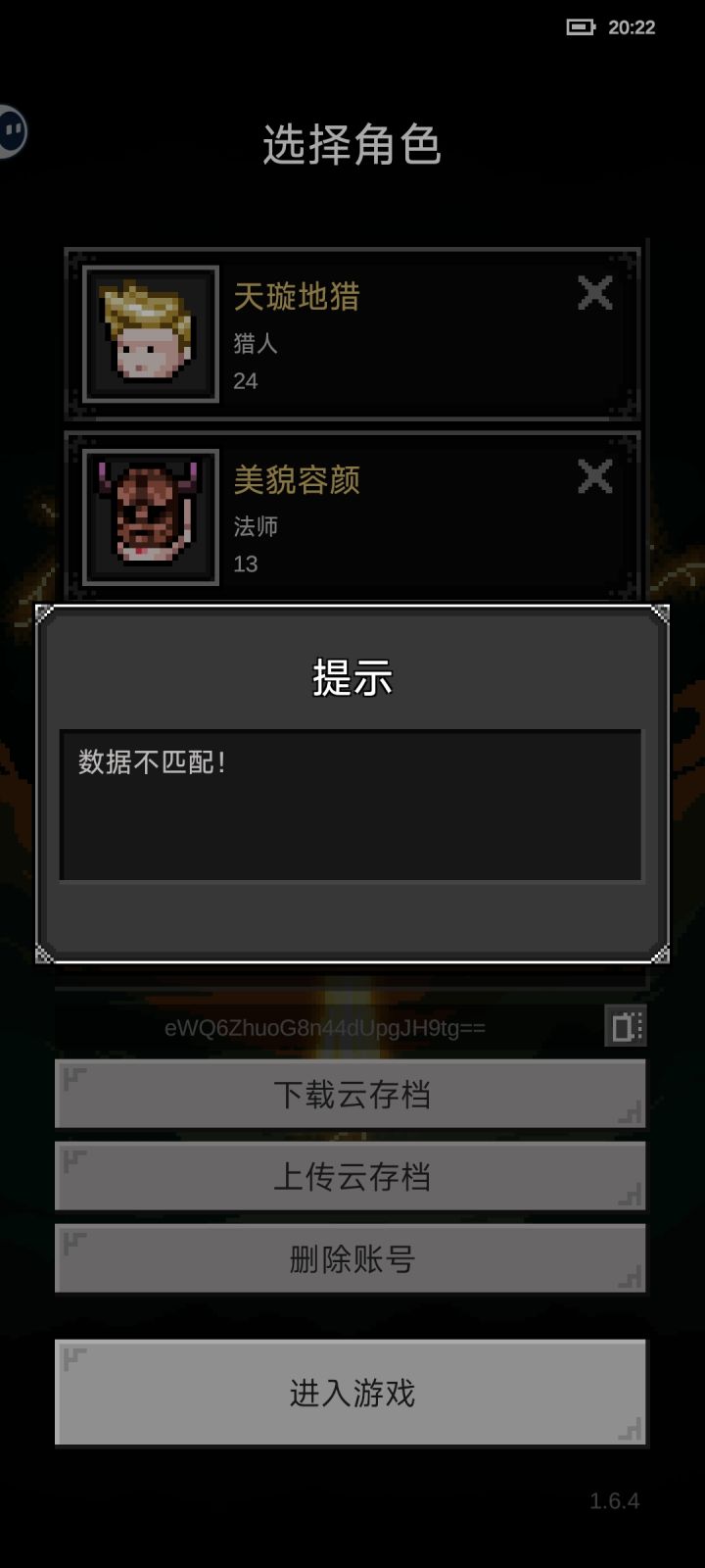 数据不匹配,玩不了了...