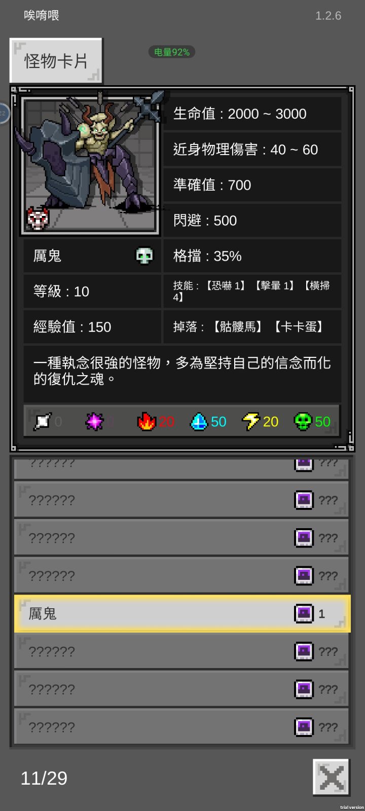 厲鬼圖鑑一張三孔頭 打6頂 六孔劍 送我,我也不要了。。三孔盾 打2個 三孔甲 打1件