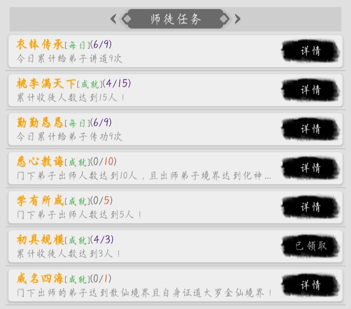 师徒玩法昨日更新完善,加入了声望系统。声望需要完成师徒成就任务,共有三个。想要成为师徒,首先要是好友,其次好感度要达到500(送500朵玫瑰花,在洞府种植),然后申请拜师/申请收徒,最后对方同意。注意事项:一、师傅要达到金丹(推测为结金,具体未测试)才可主动收徒,别人拜你则无限制,理论上只要双方愿意,练气也可以收金仙徒弟。但是目前拜师有bug ,师傅无法同意徒弟的拜师请求,所以实际上师傅的境