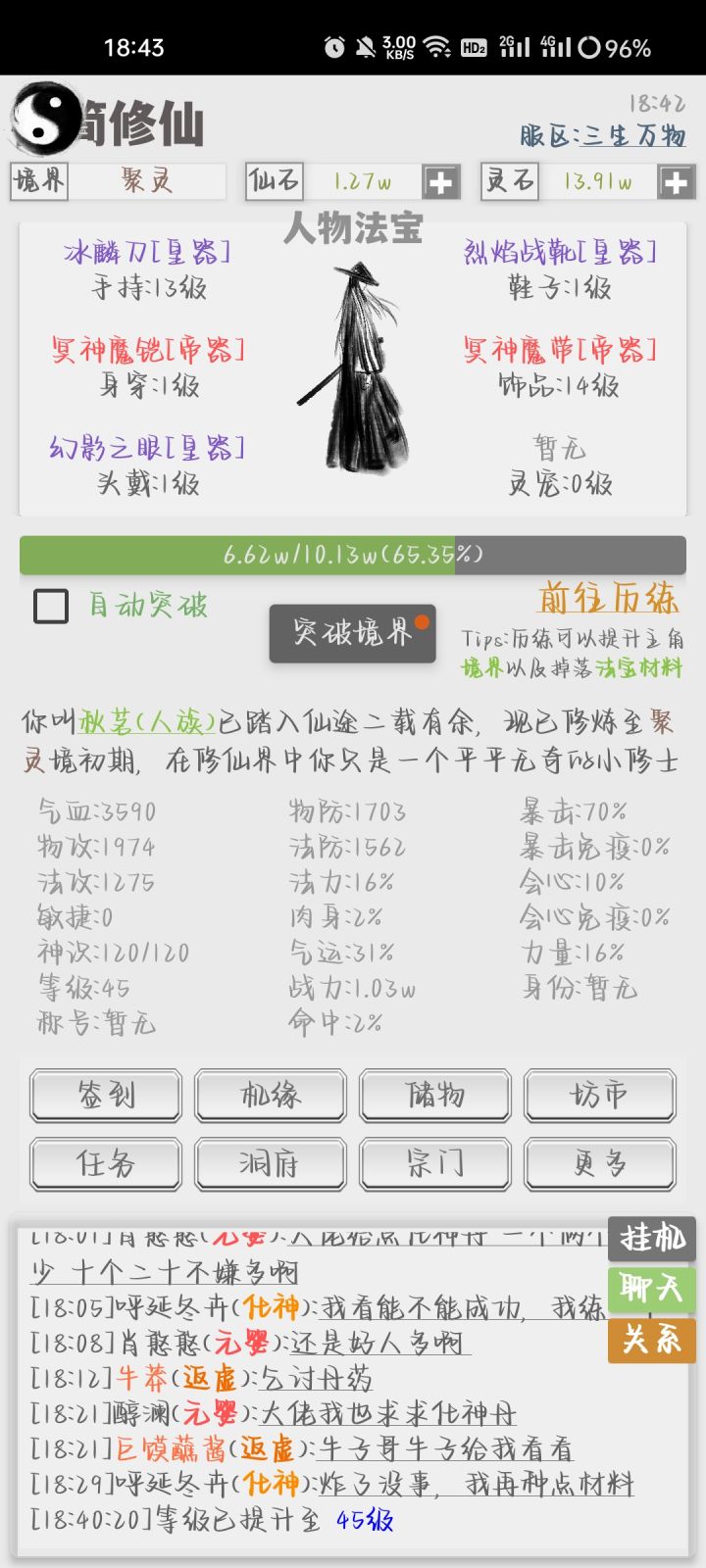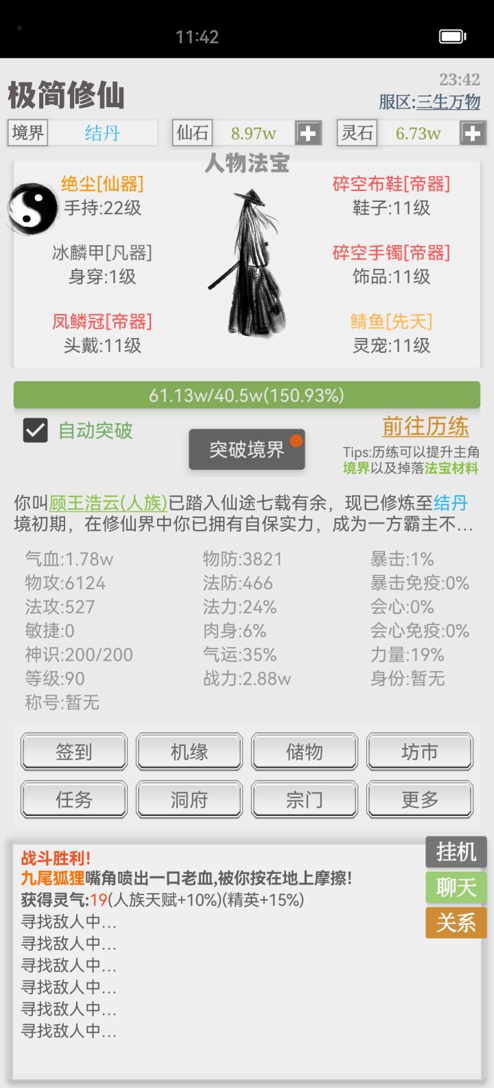 猜测2,人是天地间的一个生物,在吾辈修士之间,为人者应立于天地之间与天争与地斗,在其逆天改命之时必不能少的了功法与法宝的陪伴,所以此次更新或许会新增新的玩法与装备。