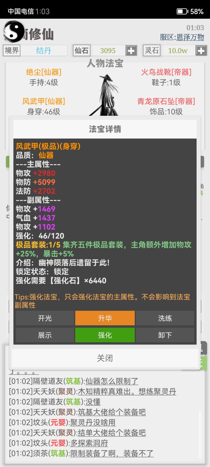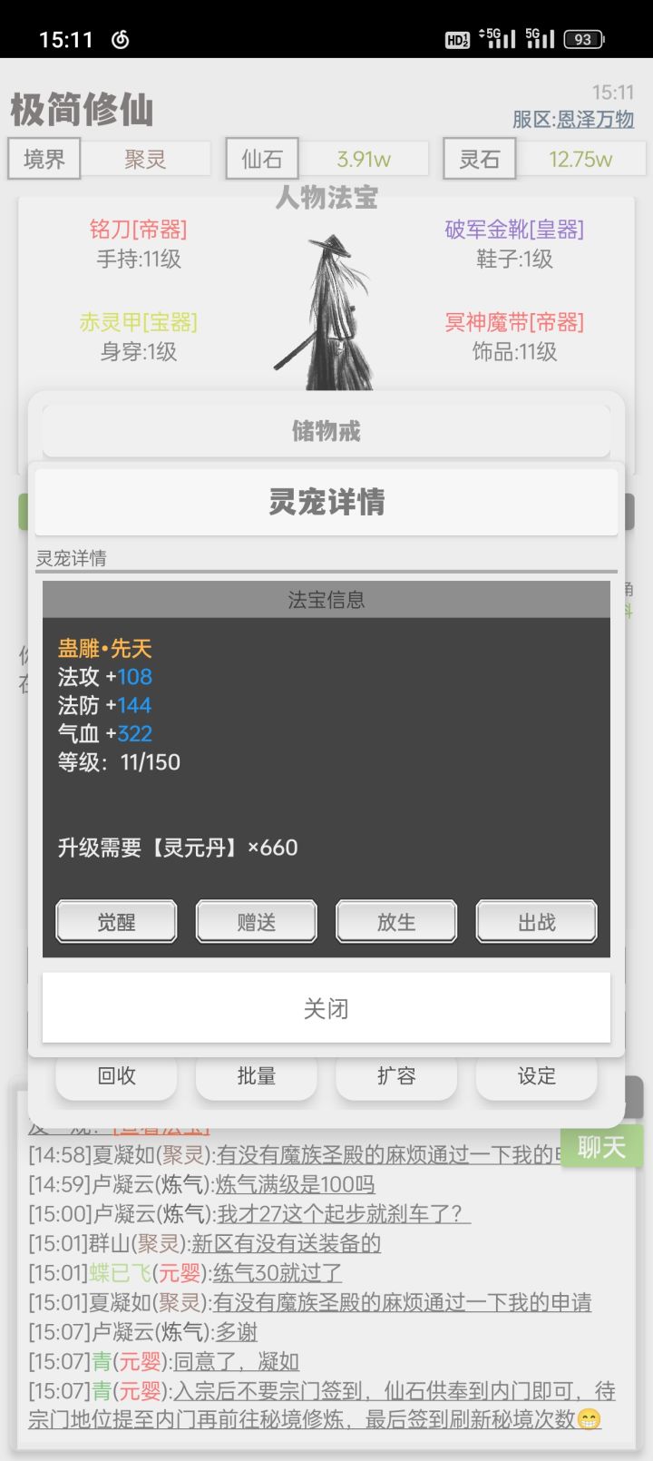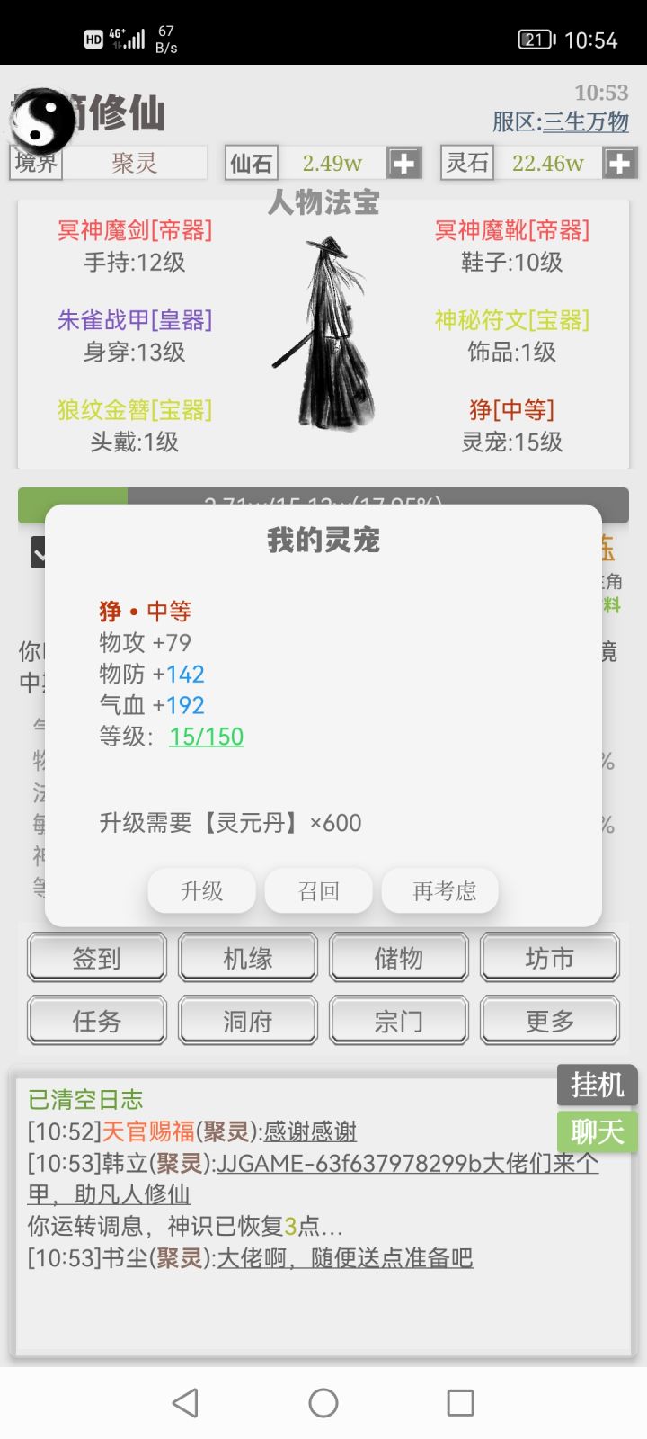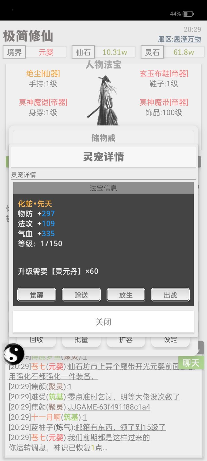 谁才是气运之子😃刚玩三天的萌新。开光洗炼的装备,抓的15级灵兽JJGAME-63f310c7c2a6c