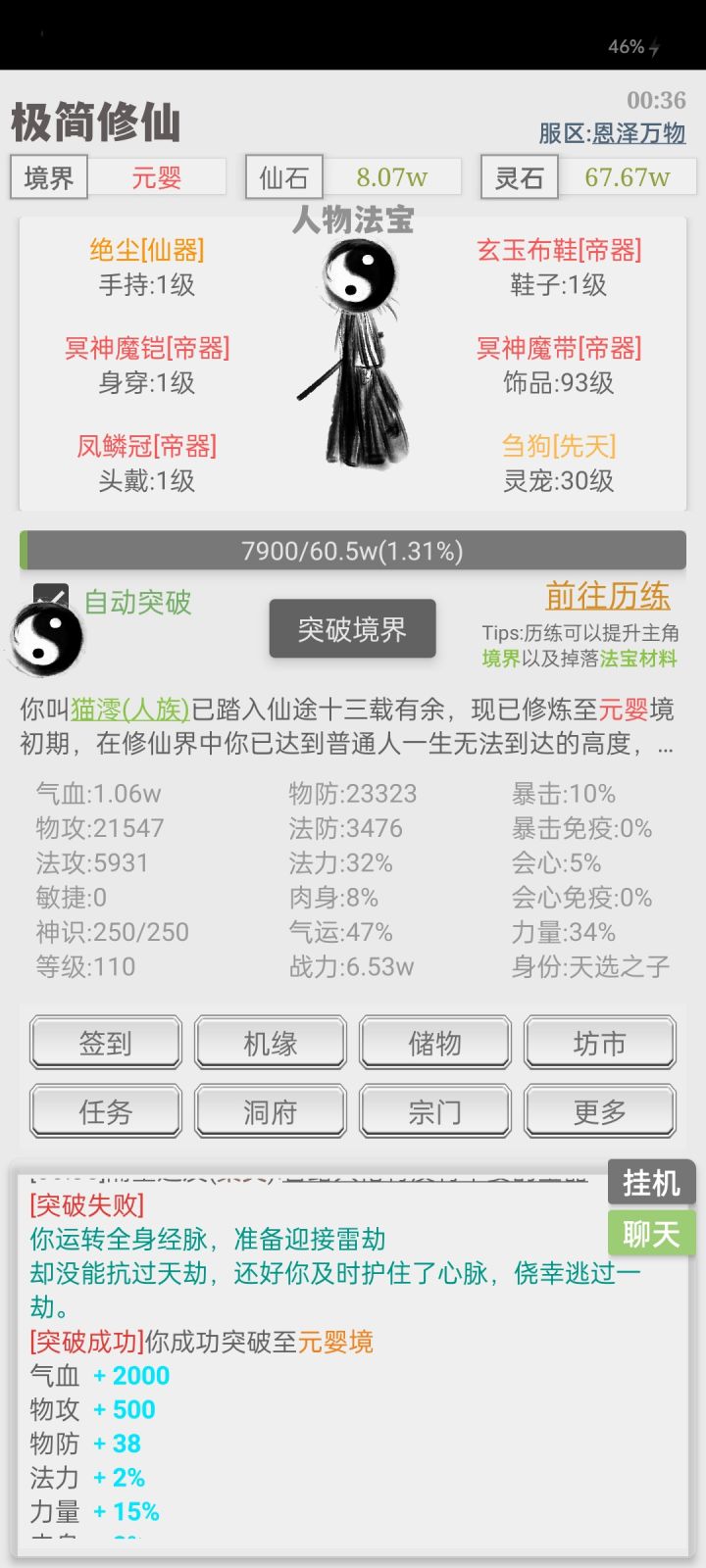 两次强突元婴就成功,还没降级耶!算不算天选之子750初始属性的先天宠物其实也不赖吧主要是想成为幸运的吃瓜群众
