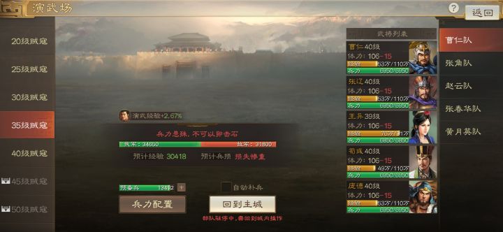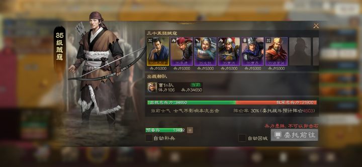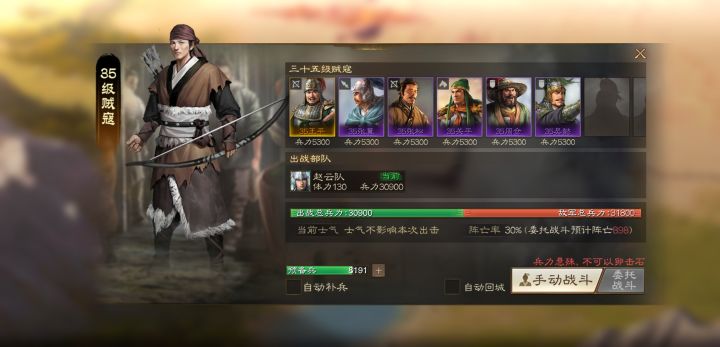 这更新之后去打贼寇,兵损这么低的情况都能显示兵力悬殊?到处有人说无法委托,有的是演武场,有的是打贼寇等等,我这是其他都能委托,就是对面带王平的不行,gch是在暗示让人去培养王平?