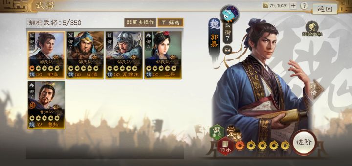 这游戏其实有很多放置因素,所以越早提升战力越早占高级地就越有资源优势,但游戏本身内容并不多,佛一点,肝一点,不用那么在意别人,自己当个单机版三国志就行