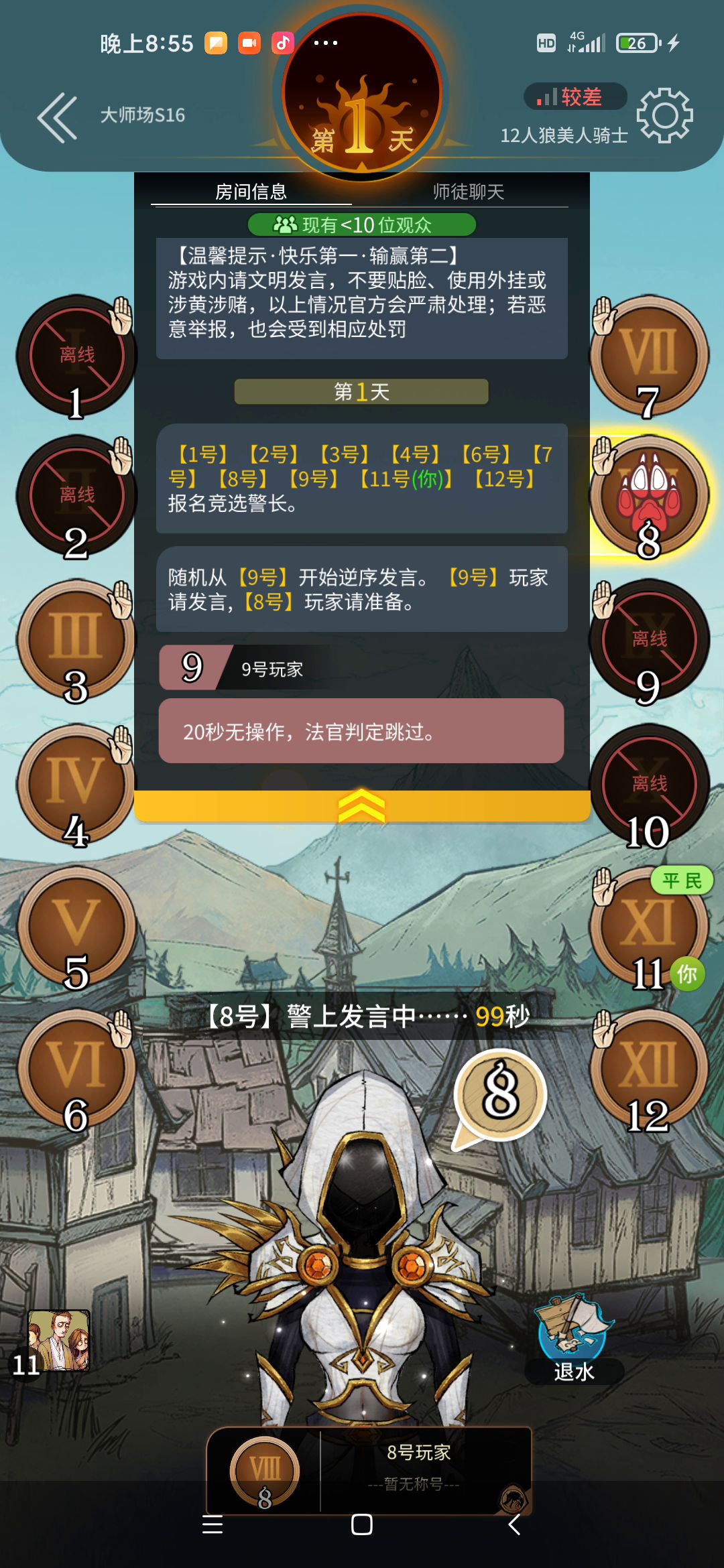 现在狼人杀还让不让玩了?之前一直闪退,我卸载重新安装。现在玩游戏,所有人发言没声音,我退出游戏,就一直登录不上游戏?一开始还以为是家里的WiFi出现问题了,后来我开5g都没用,就是上不去。这也太恶心我了。游戏是个好游戏,希望系统做好一些,还有给我发个离线消除卡,还有把我掉的荣誉积分还给我!!!