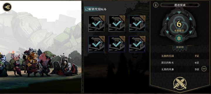 首先好消息是爆装备了,坏消息是爆的猫猫的。推荐阵容鳄鱼 舞女 鼠狮 猫猫 推荐有红武再去尝试。因为鳄鱼舞女都有多动症 推荐1、2、3号位带自愈 4号位速度拉满。阵容多打打地图的野怪 野怪都可以打过之后再建议去遗迹,可以磨合站位打法 看到怪以后不会瞎丢技能5层打完后我状态基本是满的 前面就不多说了6层哥斯拉 我预判它起手要拉我的4号位猫猫,就起手猫猫与鳄鱼换个位置,因为没刷buff 结果哥