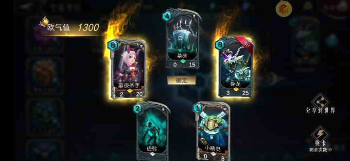 我太天真了,开始买了5个亡灵宝箱就去开骨龙。。。结果是买了50个亡灵宝箱,开了4次橙卡,换卡9次都没有出。应该换12次的,最后一张手滑点快了,开的什么橙卡都不知道。无底洞啊不开了