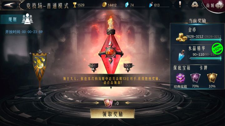 舒服舒服,入坑第一天竞技场13胜
