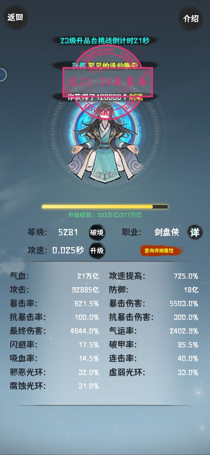 飞剑升级到2000级以后再升级非常耗费灵石,建议先把40次广告奖励的拿了。之后再升级飞剑。31品之后的有些大怪和活动怪会秒人,一下就没了,需要适当的选一些加气血的装备,做到一下攻击死不了能吸上来。
