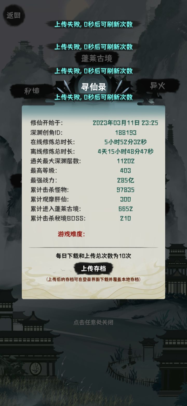 大佬们,我出bug了,存不了档,一直是存档失败,还有0秒能存,咋弄