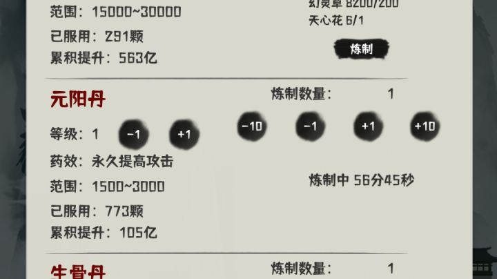 作者能不能把炼丹优化一下呢,比如等级到了不能练不练低级丹,这老是误点到就很难受,加个撤销也行啊,这一锤子买卖好难受啊。