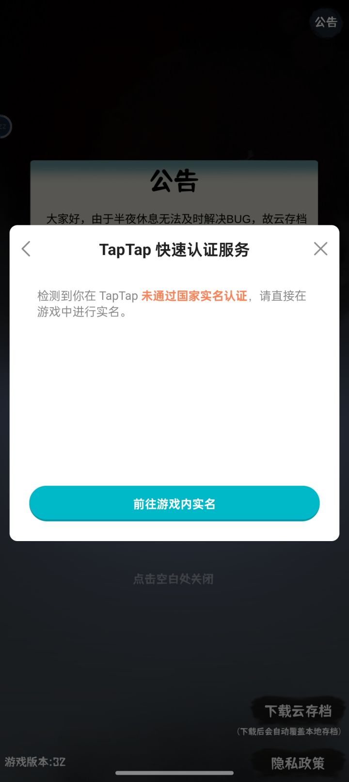其他使用tap实名的,都没问题,就这个游戏检测出未实名?