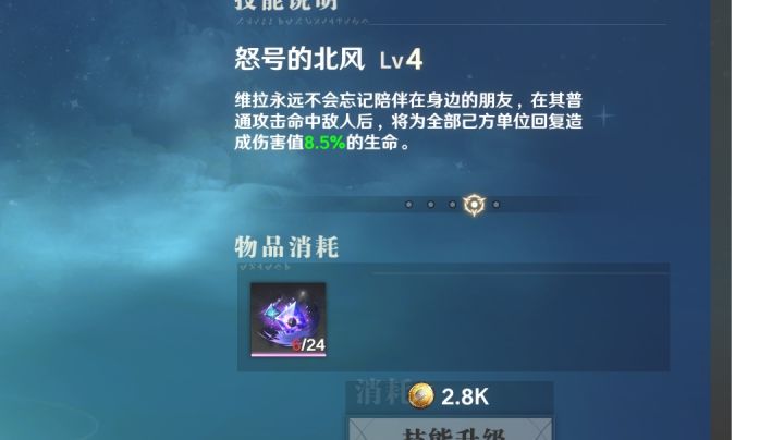 维拉被动可以回调一点数值,但是第二章前面几关没有奶妈基本没法过,知道吗?后面的关卡我已经不想打了,感觉也没必要打了,被远程怪物集火一下,前排直接融化了,10秒刷新一次的护盾不够用,另外一个奶妈是针对主角的奶,唯一一个全队奶削弱到5%之后 维拉1700+攻击被动一级只回80多这还是把金色念装给她的效果(虽然说目前能回170,但是在怪物平a一下掉800多面前好像真不够用吧),目前你们游戏也就只有主角和