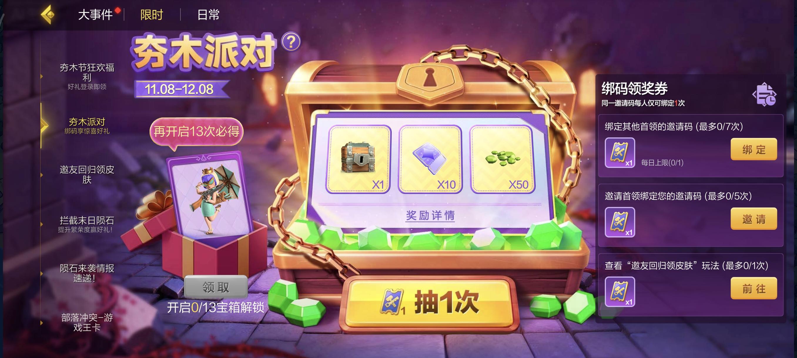 回归用户互绑的来,夯木节,狂欢季,福利多多,一起夯木!快来绑码赢好礼:SN4PAAK