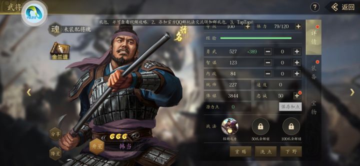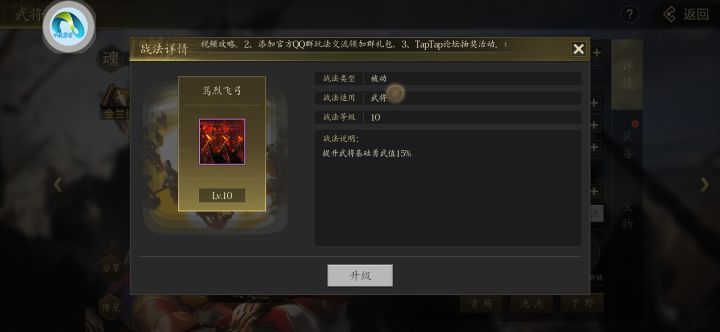 在TapTap版《军令如山:王者之心》手游里需要大量战法残卷,才能兑换得到的珍稀战法竭忠尽智。其来源,取自汉代著名史学家司马迁所著的《屈原列传》。其原文是,屈平正道直行,竭忠尽智,以事其君,谗人间之,可谓穷矣。用今天的话来说,就是毫无保留的献出自己的忠诚和才智为老板或者心中的信仰去奋斗。如此实干派的打工人,真心建议老板加鸡腿啊!TapTap版《军令如山:王者之心》的竭忠尽智战法,除了能给持有武