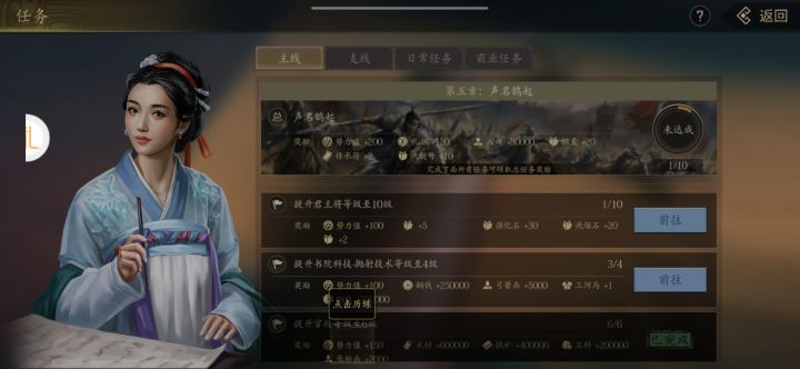 Bug了,进游戏没有出现这个新手指引,然后打到后面重启了下游戏,出现了,点了历练后没有后续引导