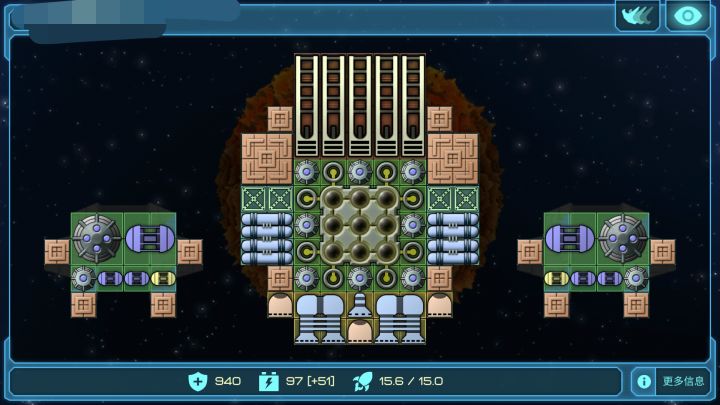 (可以把物质反应堆下面的小型反应堆换成小减震)等离子网可以换成4个小电池这个配置有点伤眼睛(为什么我会知道这个配置伤眼睛呢?)实战↓↓↓(操作有点菜,因为那个脉冲星m2真的太亮了,都看不清敌人)你要是想要更多的小太阳(雾),可以用2个生物Ⅲ僚机,就像这个↓(更多快乐!!!)萌新专用(全白)小减震的话,拆别的舰上的(忘了哪个舰自带小减震)扩格我推荐先扩引擎格,因为有速度才会快乐(请摘下