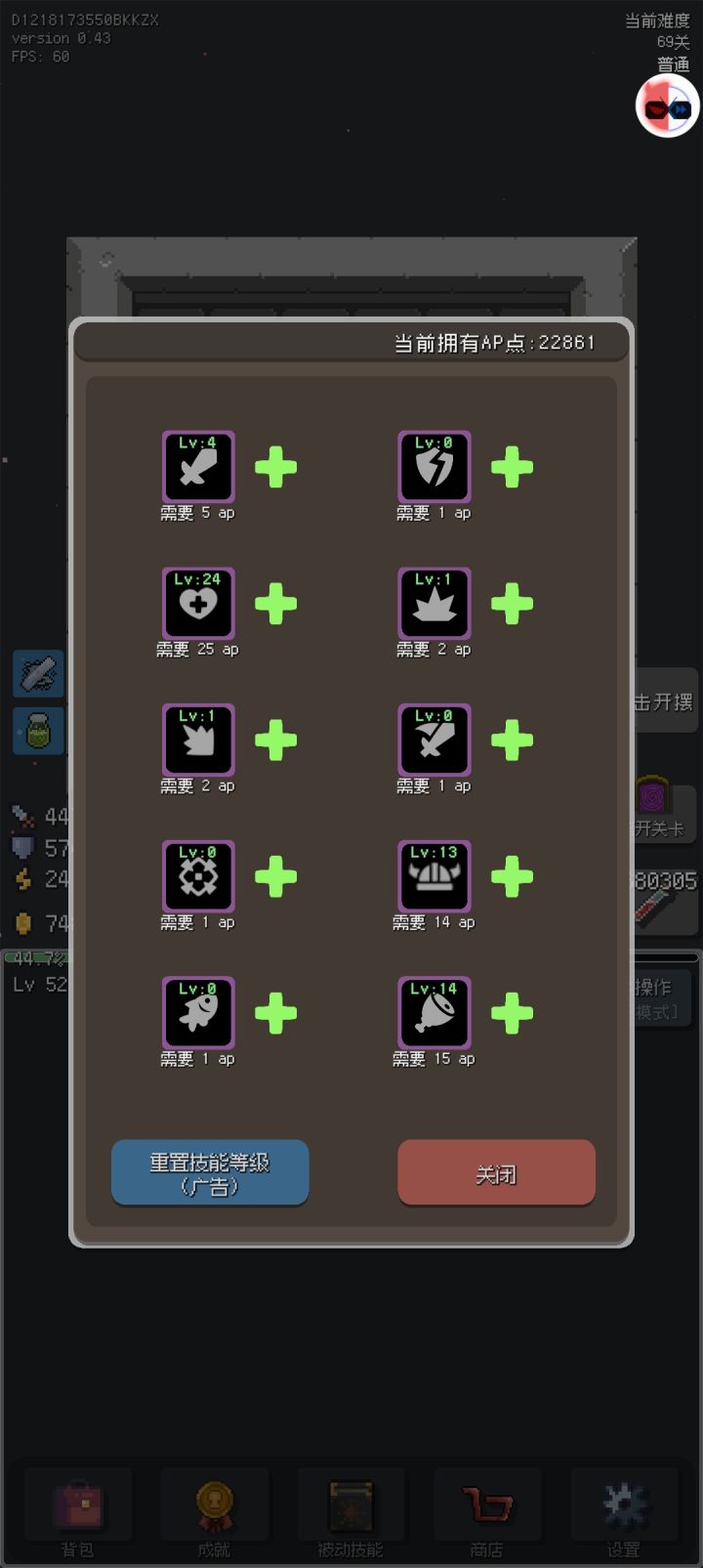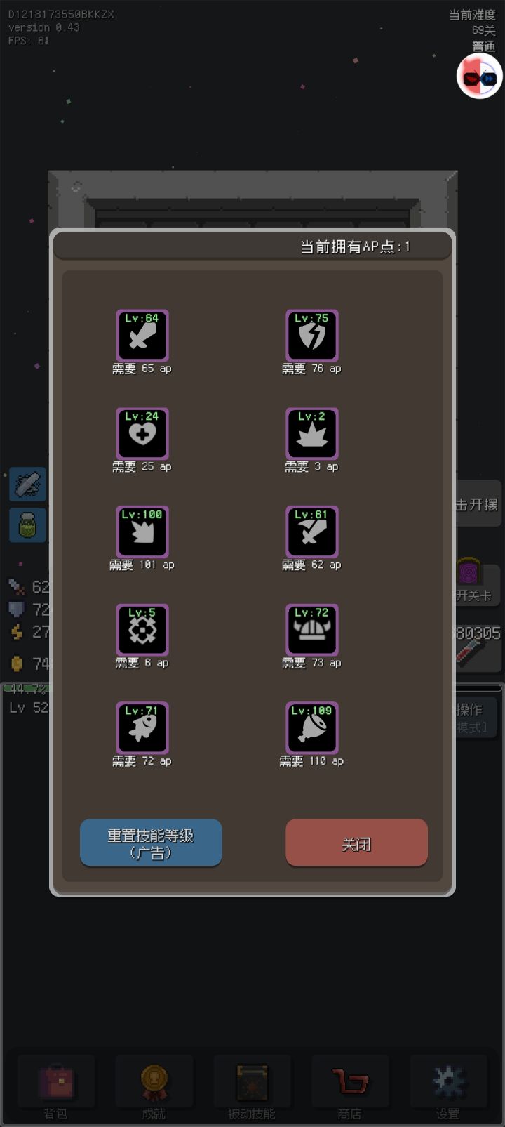 更新0.44增加了离线收益,让不在线摆烂也能获得少量收益奖励领取的关卡添加了完整的关卡数被动技能升级需求减半,请重置后再加一次增加了下一关按钮自动摆烂设置界面增加了自动下一关的功能增加了关卡至170关加强了装备的属性削弱了怪物的属性修复了较高关卡爆出装备的等级不符的bug修复了转生扣血的bug修复了一些UI界面的显示bug696673559这个