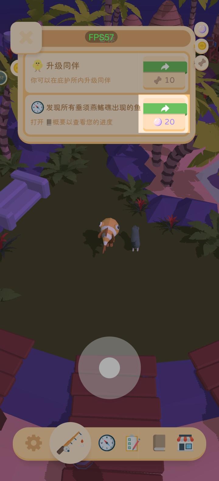 弃游了,可玩儿的东西比较少,看金币广告可以一次得到大量金币,但是从使用这部分钱开始升级之后,就离不开了,因为钓鱼等方式能得到的金币都非常非常非常少。钓一次鱼能得到11k左右金币,但升级钓鱼助理和图腾就需要600k+以及10000k+了。不看广告真的没法玩儿,想挣多一些金币只能做职业任务(但有刷新时间限制,1min,8h不等),钓鱼主要是发掘新品种的鱼和偶遇宠物与饼干袋(一次能开出6-8个左右),