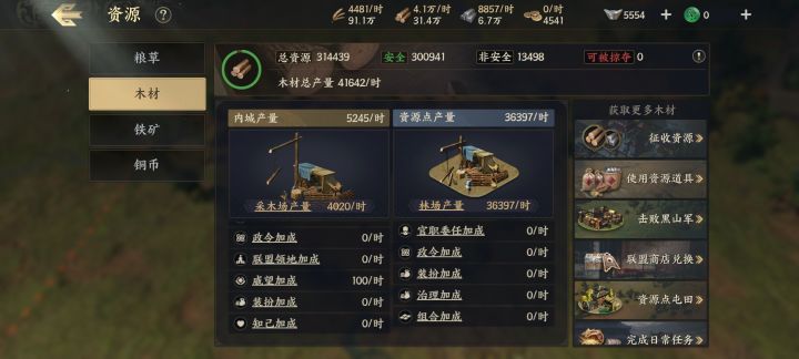 网上看到有人摆九宫格就能出现资源组合带来的加成,但是我怎么没有呢。图一是我的木场摆放,图二可见木材没有资源组合加成。