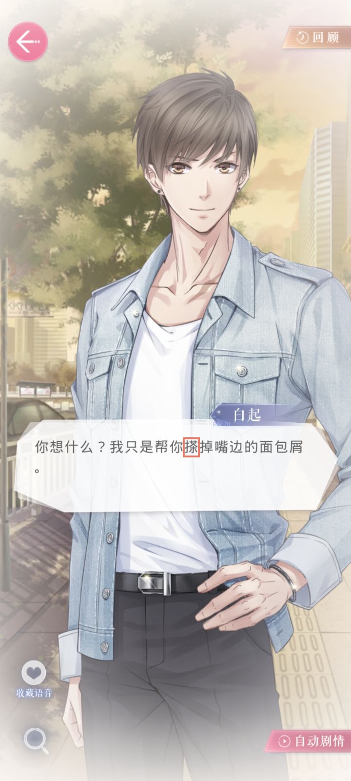 原文:我只是帮你“搽”掉嘴边的面包屑校正:我只是帮你“擦”掉嘴边的面包屑位置:约会-白起-探病之约-第二节