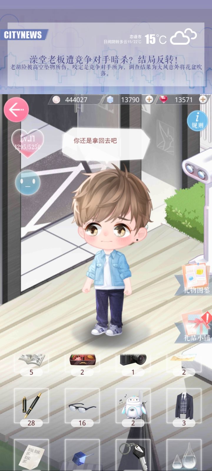 哈哈哈哈,一直给白起送西服,还没送到十套呢,就被郁闷的他给赶出去了😂😂还终于完成了一个成就,成就里说是“一不小心”,其实我就是故意的,委屈、生气的起起那么可爱又少见,昂,就算被他赶出去,我也开心啊😂