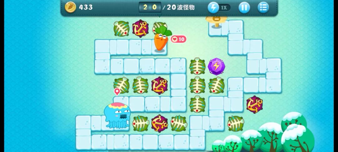 蓝色怪物就一点点血了,突然就不打了罢工了,这关我打了两小时一直是两星,终于要打通了结果bug了😭😭😭