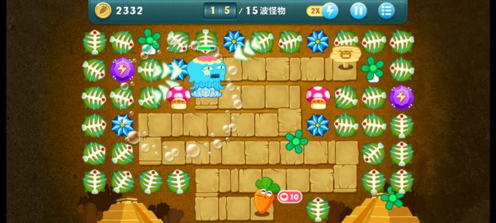 1、首先在对局开始的时候在两个U字型的位置放两个太阳花,使用太阳花快速清理周围的道具;2、在我们使用太阳花将大部分道具清除之后可以放一些鱼刺和蘑菇,在将周围道具清除的差不多了之后用金币将道具都升级;3、这关的难度并不是很大,我们最后需要多配合冰花减速,鱼刺和炮塔来输出就好了,很容易就可以过关。原帖